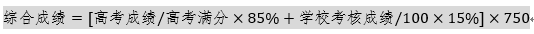 综合成绩(总分750.00分,精确至小数点后两位)由高考成绩和学校考核成绩两部分组成,折算办法如下: