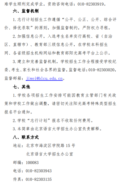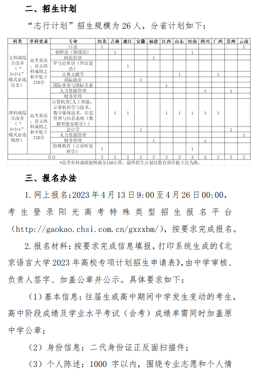 文章来源:北京语言大学 北京语言大学2023年“志行计划”高校专项招生简章