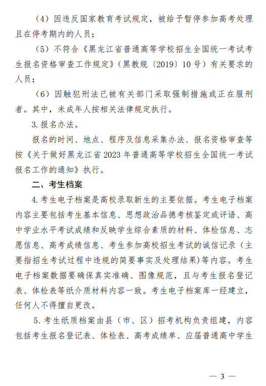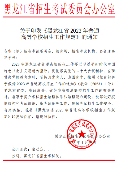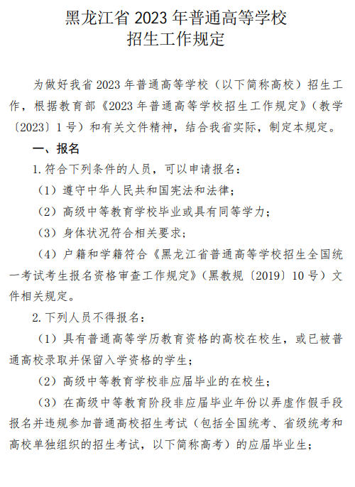 来源:(黑龙江省招生考试信息港)关于印发《黑龙江省2023年普通高等学校招生工作规定》的通知