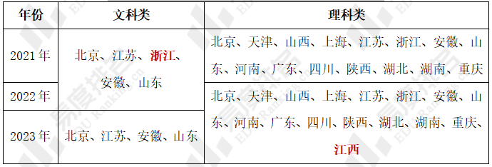 2023年文科类专业取消浙江省的计划,2022年起理科类专业新增江西招生。
