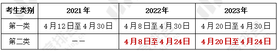 2022年开始,第二类考生的报名截止时间提早至4月24日,且第二类考生需要在
