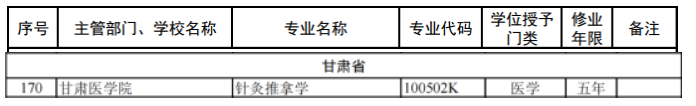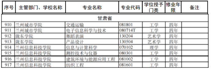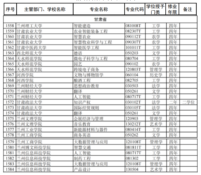 新增审批本科专业名单(甘肃省)