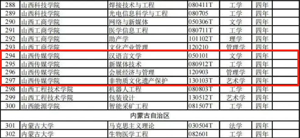 近日,教育部公布了2022年度普通高等学校本科专业备案和审批结果,批准山西省21所高校新增备案本科专业53个,其中我校新增4个本科专业: