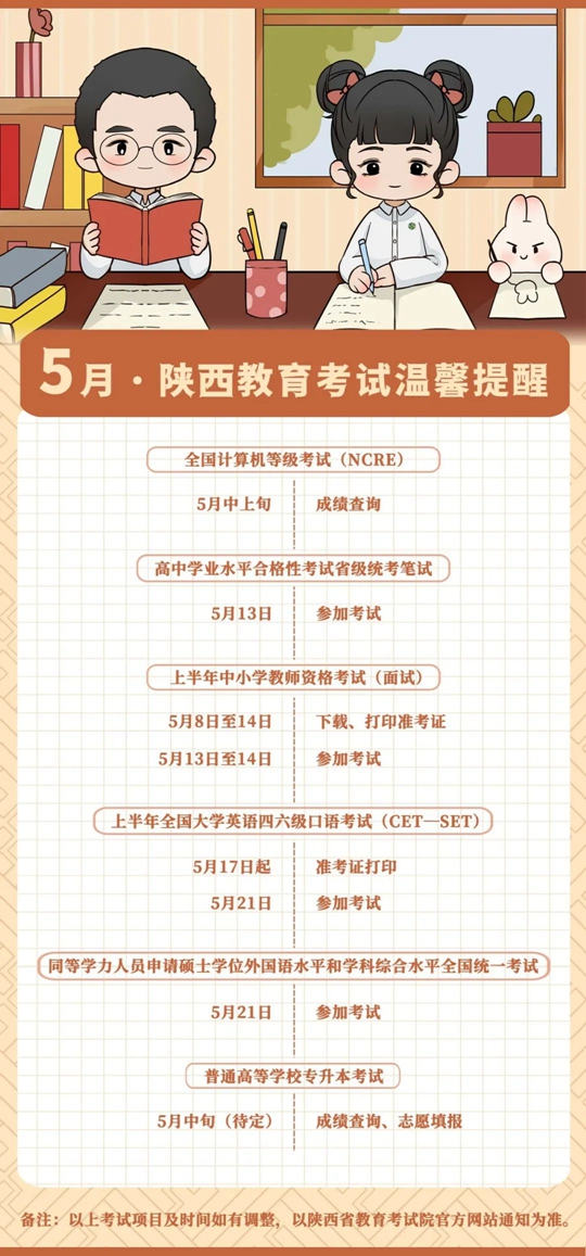 5月陕西教育考试温馨提醒