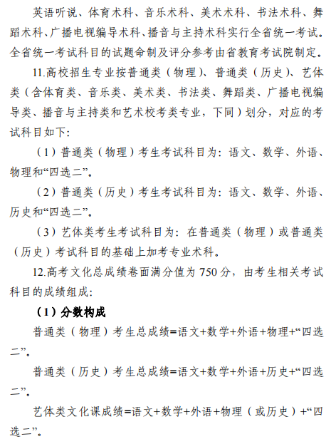 “3+1+2”考试科目总分(不含政策性加分)仍相同时,按以下原则进行排列:第 1 位序,比较语文加数学两门合计成绩高低,高者优先;第 2 位序,比较语文和数学两门中的单科较高成绩高低,高者优先;第 3 位序,比较外语成绩高低,高者优先;第 4位序,普通类专业按选考物理、历史分开两类比较物理或历史成绩高低,高者优先;艺体类专业比较术科统考成绩高低,高者优先;第 5 位序,比较两门再选科目中的单科较高成绩高低,高者优先;第 6 位序,比较两门再选科目中的单科次高成绩高低,高者优先;第 7 位序,单科成绩均相同的同时投档。