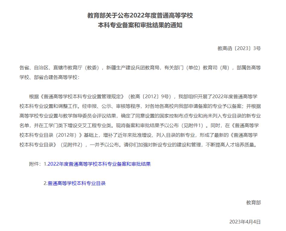 近日,《教育部关于公布2022年度普通高等学校本科专业备案和审批结果的通知》发布,学校申报的4门本科新专业“上榜”,这意味着学校新增了4门本科专业。新专业属于哪些学院,要学习什么专业课程?跟着小编一起来认识这4门新专业!