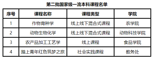 近日,教育部发布《关于第二批国家级一流本科课程认定结果的公示》的通知,我校《作物育种学》《动物生物