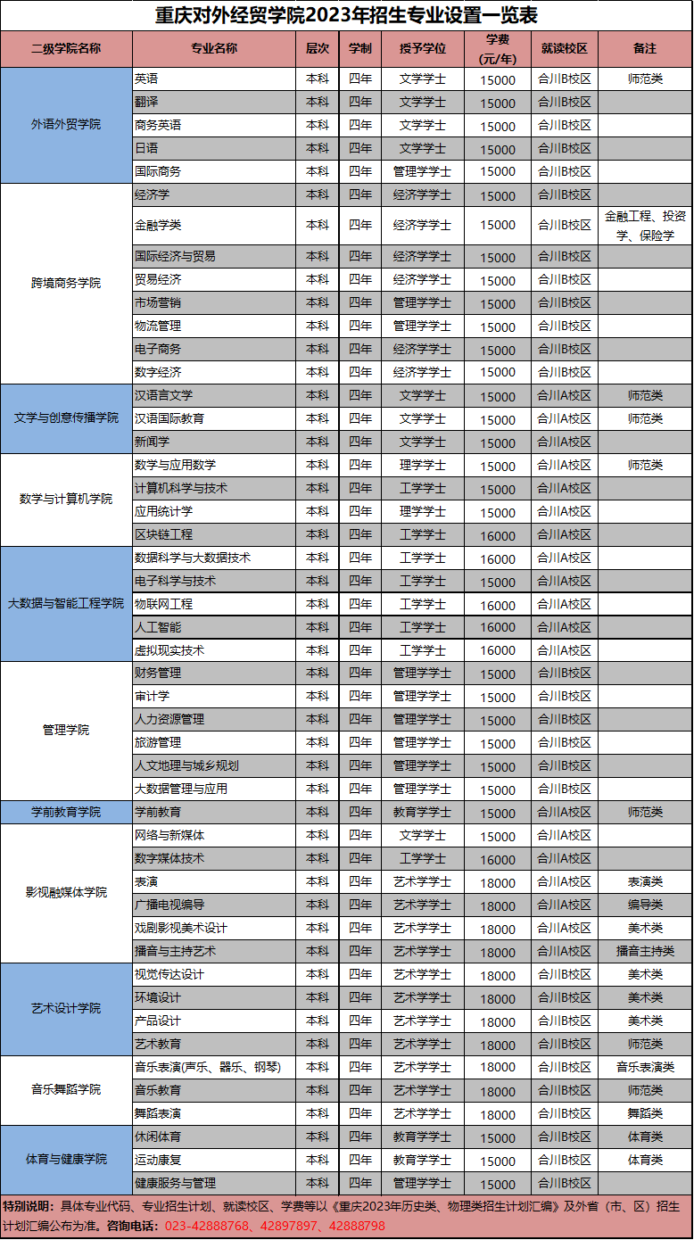 重庆对外经贸学院2023年招生专业设置