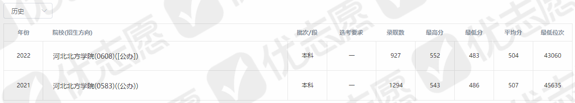 近2年院校分数线