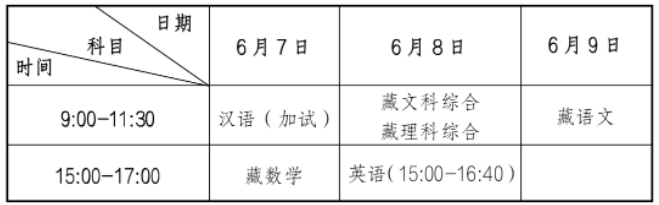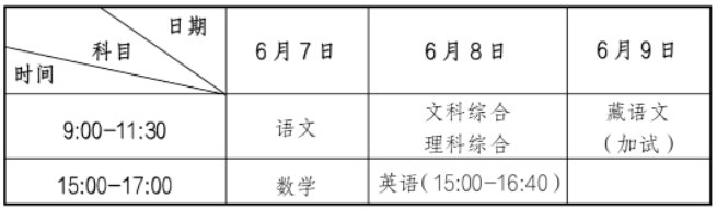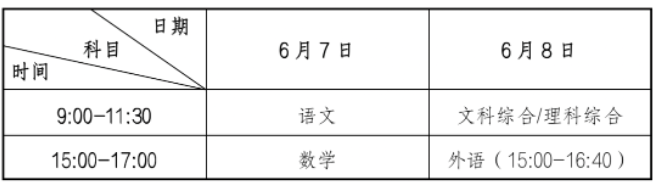 2023年甘肃省普通高等学校招生考试科目时间安排