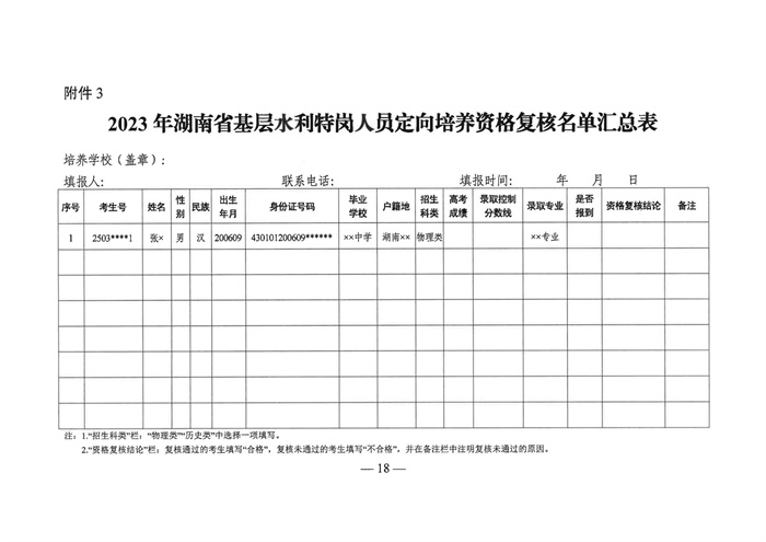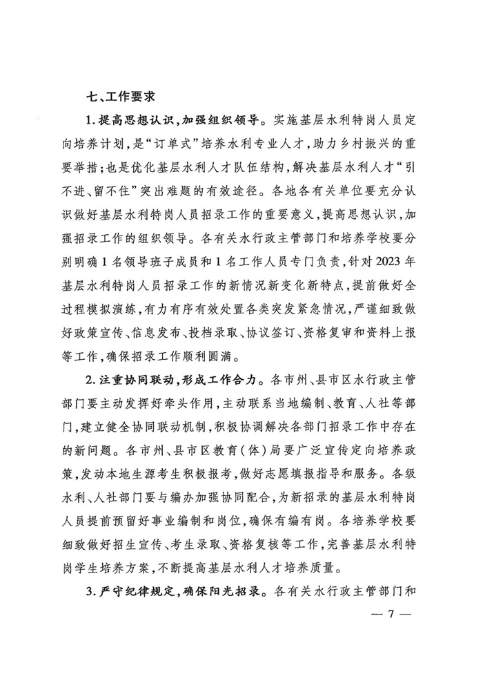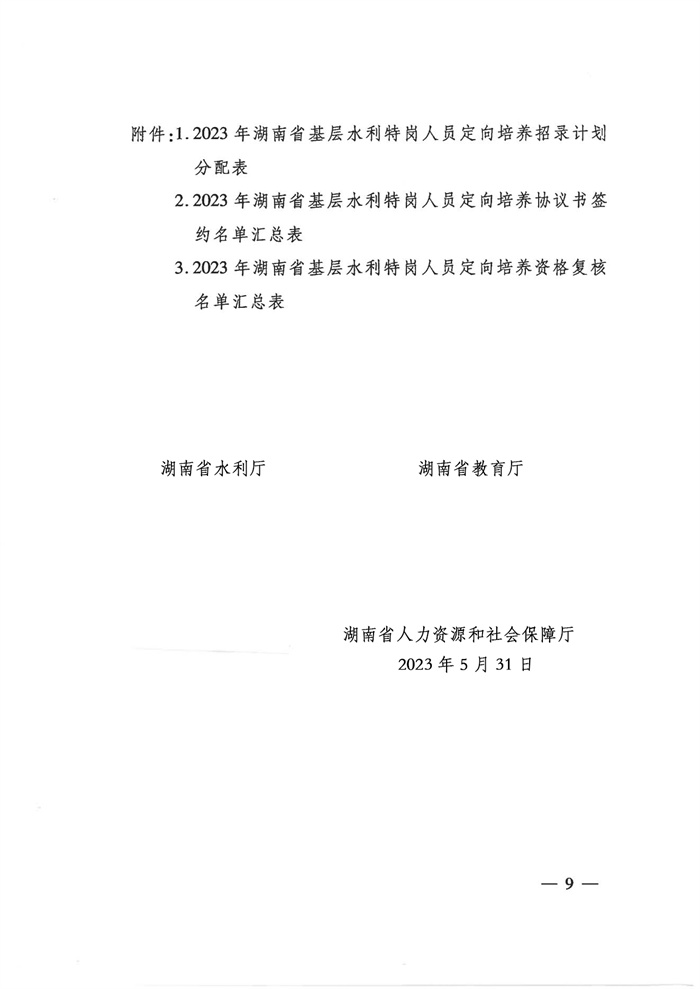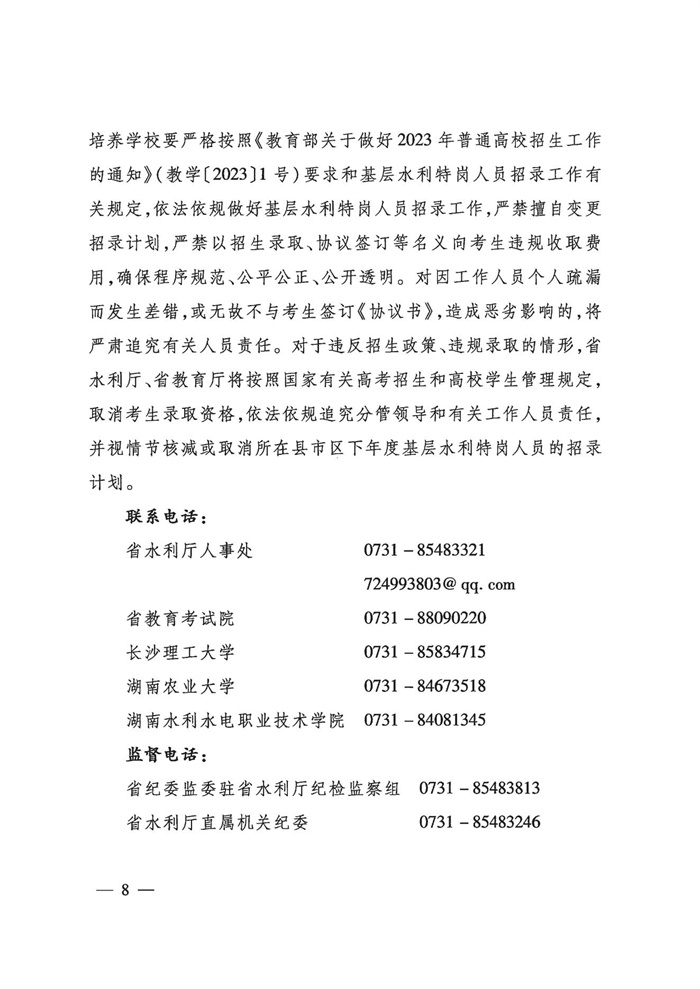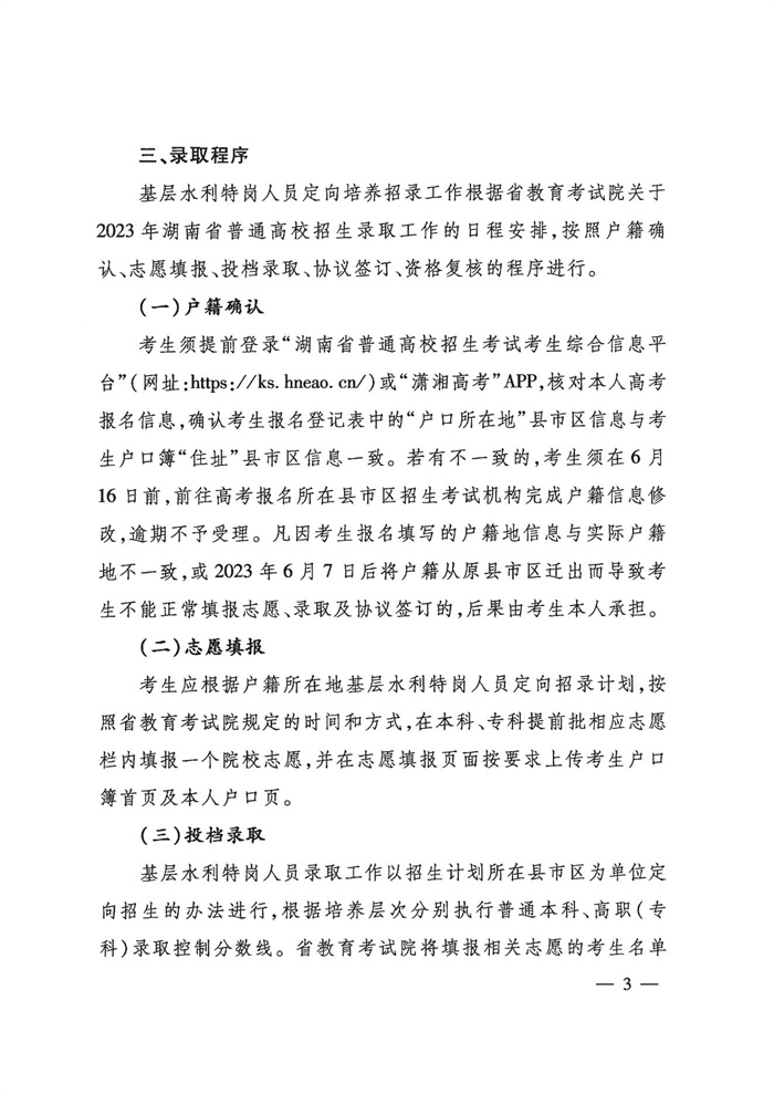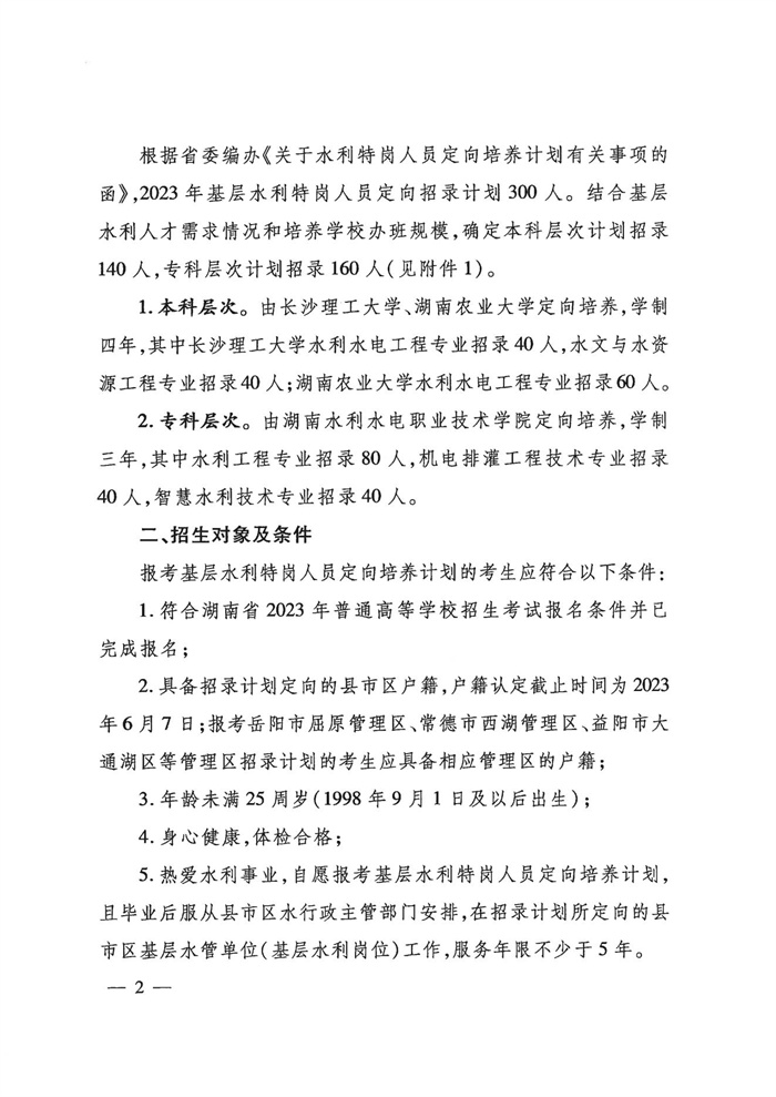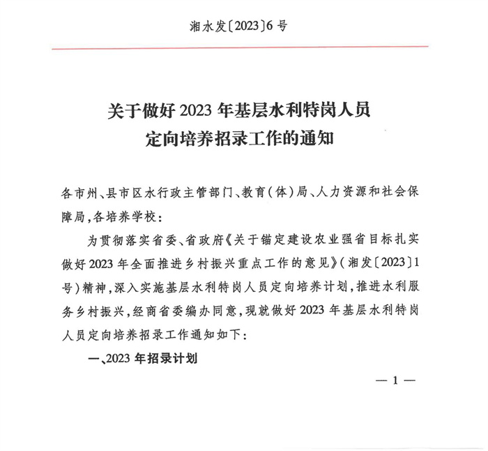 湖南关于做好2023年基层水利特岗人员定向培养招录工作的通知