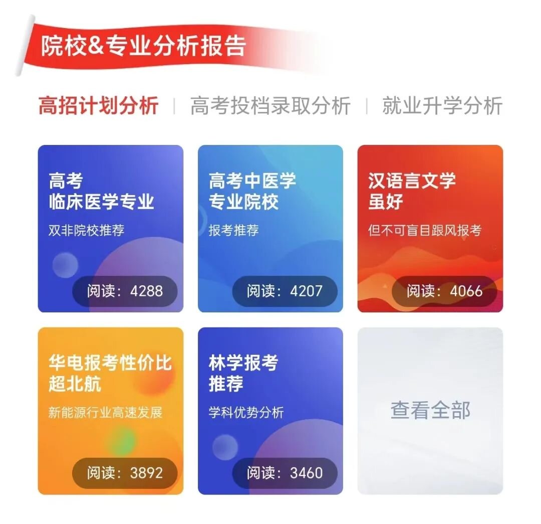 这不,优志愿特意准备了填报指南和分析报告版块,汇总了志愿填报指导课程、2023年全国高校的招生章程、招生计划分析、各省份投档录取线,并给出专业的