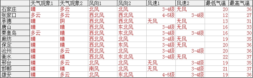 二、未来三天全省主要城市气象要素预报(河北省气象台)