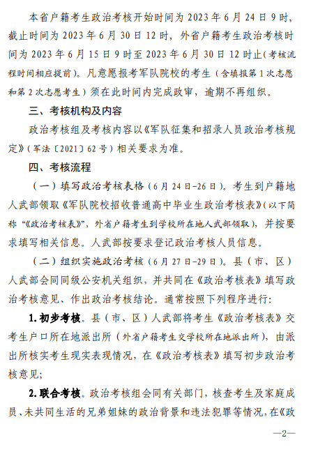关于规范2023年军队院校招收普通高中毕业生政治考核工作的通知.pdf 点击查看各市政治考核工作联系人.pdf 点击查看