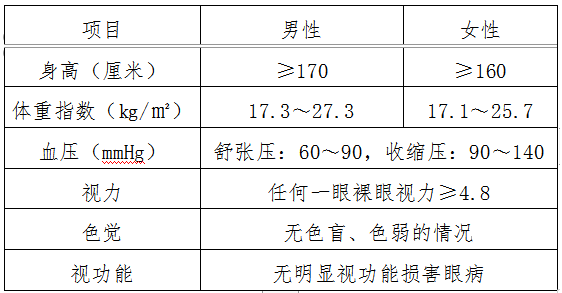 体检项目,单项淘汰,其中任何一项不合格,则视为体检不合格,不再进入面试、体能测评环节。检测结果以当日现场为准。