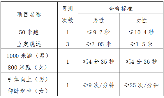 (三)体能测评要求。考生务必确认身体健康,充分考虑自身对