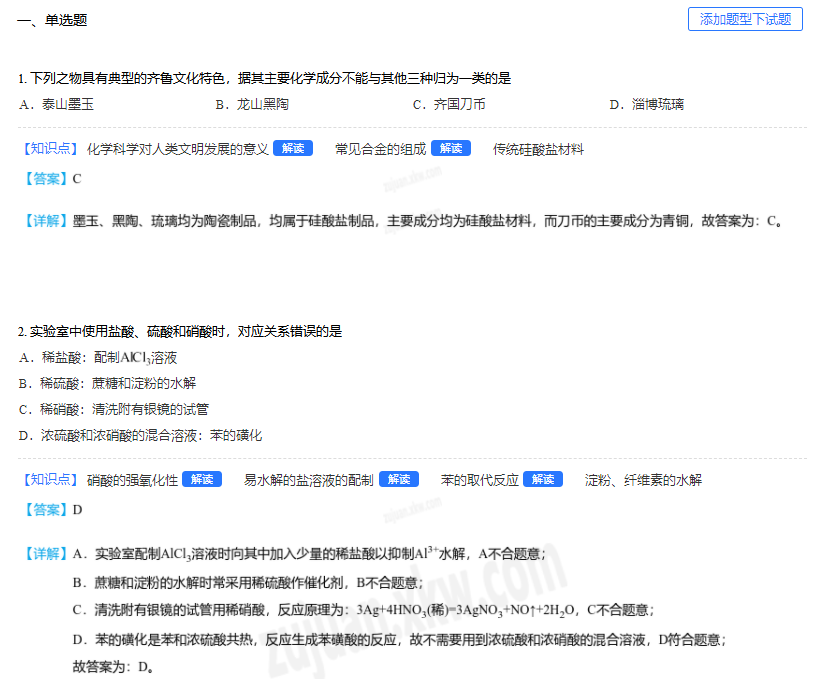 2023年高考山东卷化学真题及答案