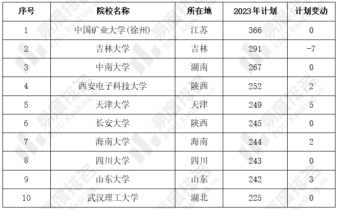 2023年共有128所省外211和985院校(含校区)面向山西考生招生,招生院校数较上年保持一致。以下展示了2023年招生计划排名前10的省外211和985院校。