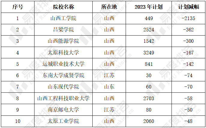 2023年山西高考扩招和减招TOP10高校