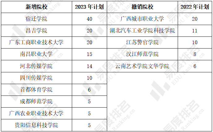 表 1 2023年山西高考新增与撤销院校