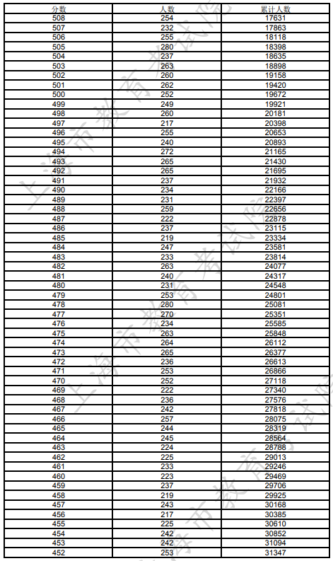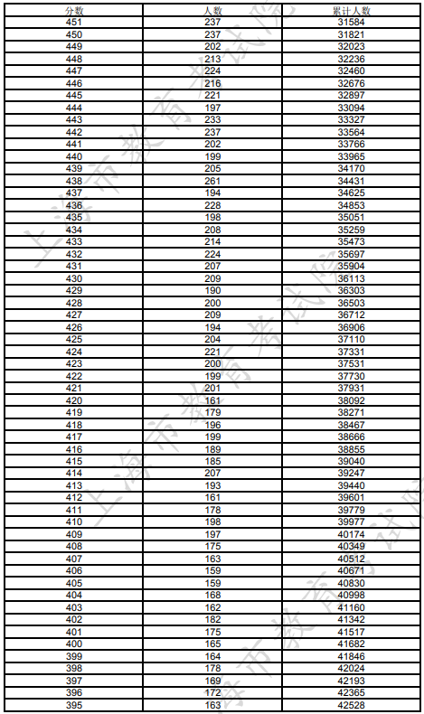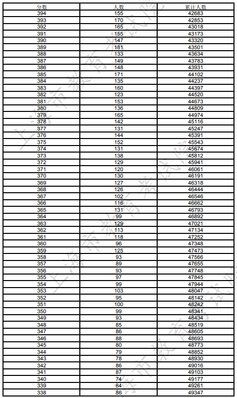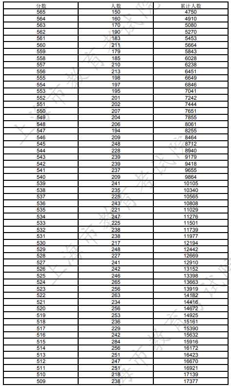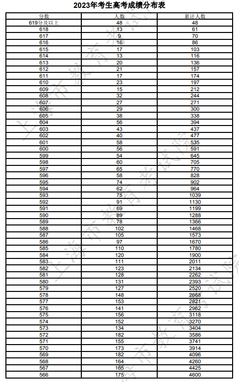 文章来源:上海招考热线 上海2023年考生高考各类别成绩分布表