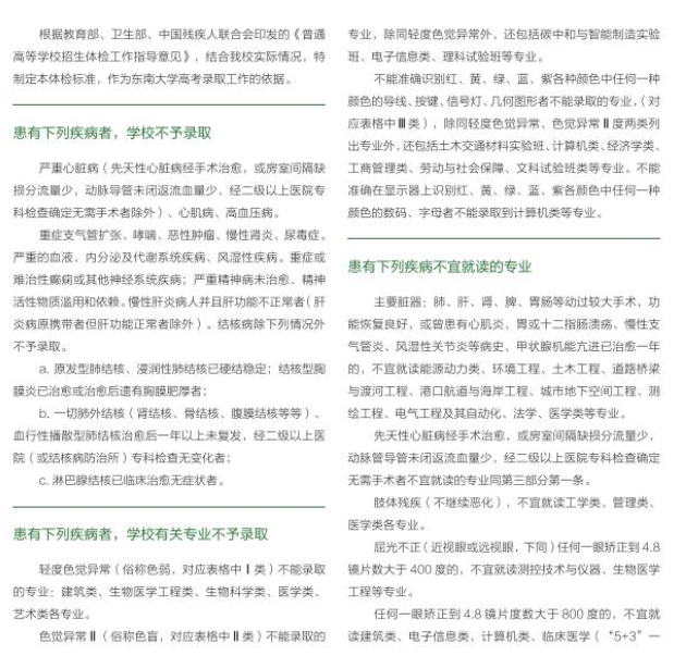 东南大学2023年招生体检标准