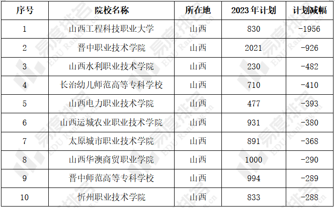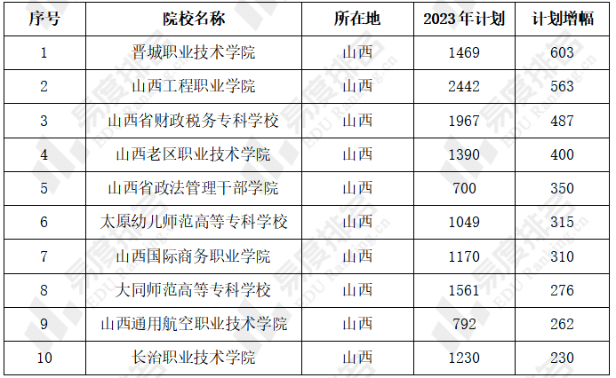 2023年山西高考扩招和减招TOP10高校