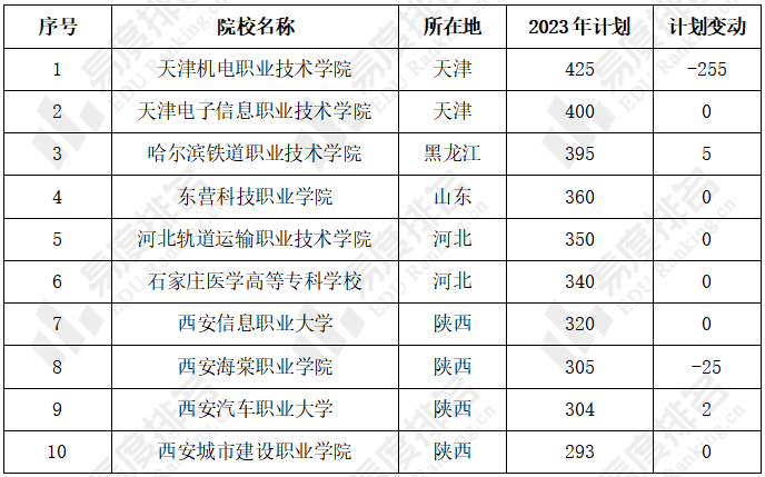 表 2 2023年山西高考扩招TOP10高校(专科普通类招生)