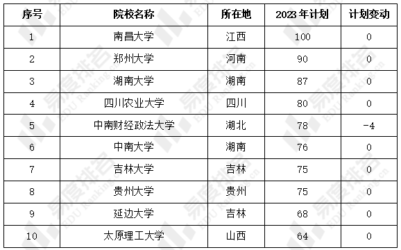 2023年共有122所省外211和985院校(含校区)面向海南考生招生,招生院校数较上一年增加2所,以下展示了2023年招生计划排名前10的省外211和985院校。其中TOP1为江西的