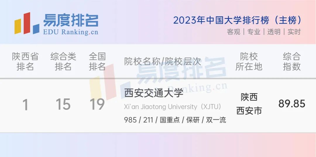 西安交通大学在“2023年中国大学排行榜(主榜)”中的名次,近年来发挥稳定,全国排名均在20名上下,西交大的工科实力之强是大家公认的的,另一方面学校的招生计划相对较少,报考难度自然非常高。