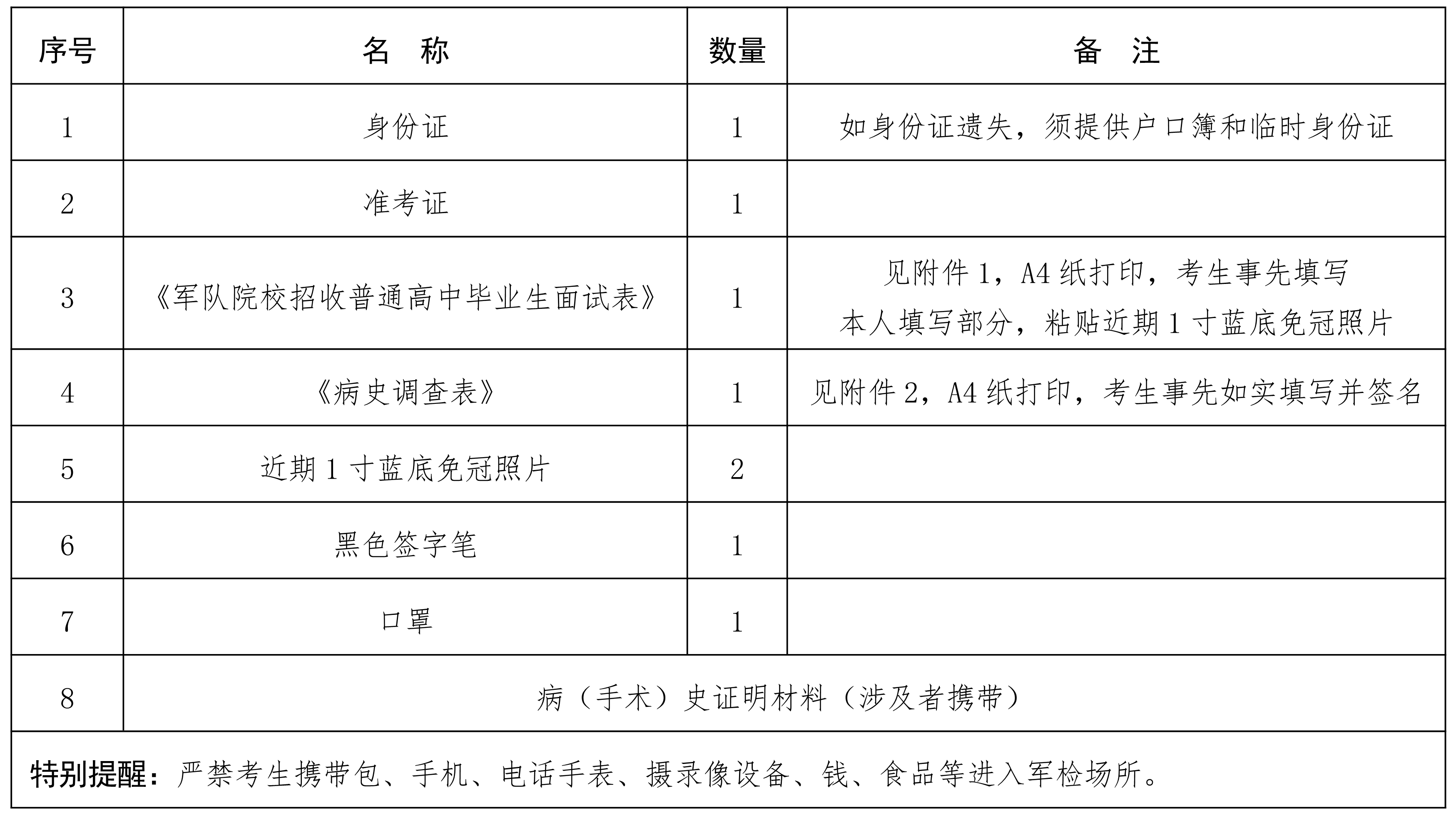 1.考生到928医院影像诊疗楼前集合,进入军检场所前须将禁带物品交给家长或交现场工作人员统一保管。