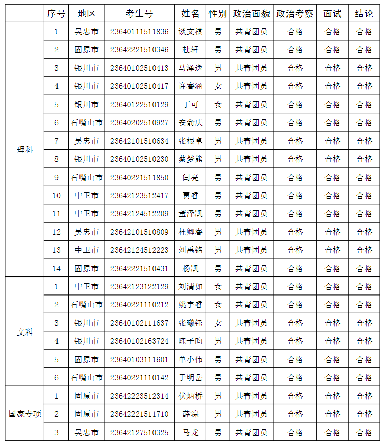 宁夏2023年北京电子科技学院招生政审面试合格人员名单