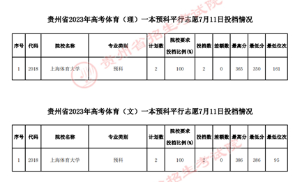 贵州2023高考体育类一本预科平行志愿7月11日投档情况