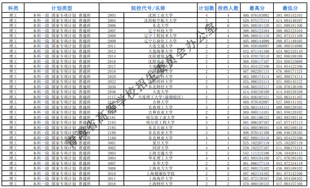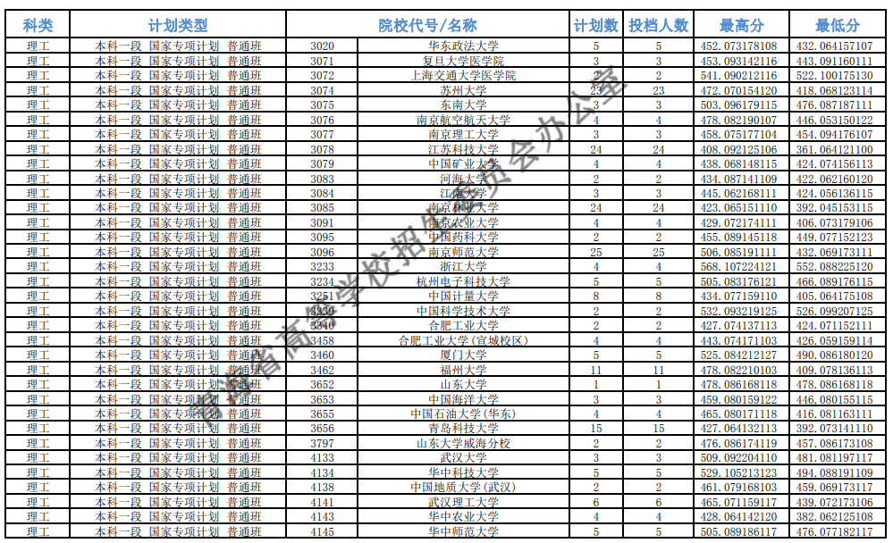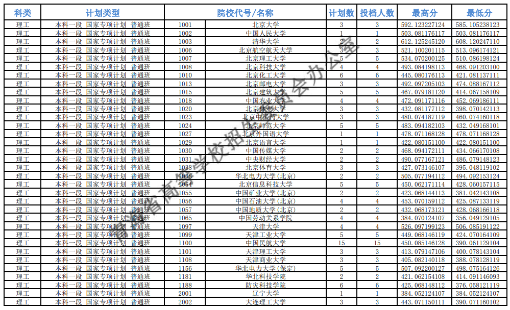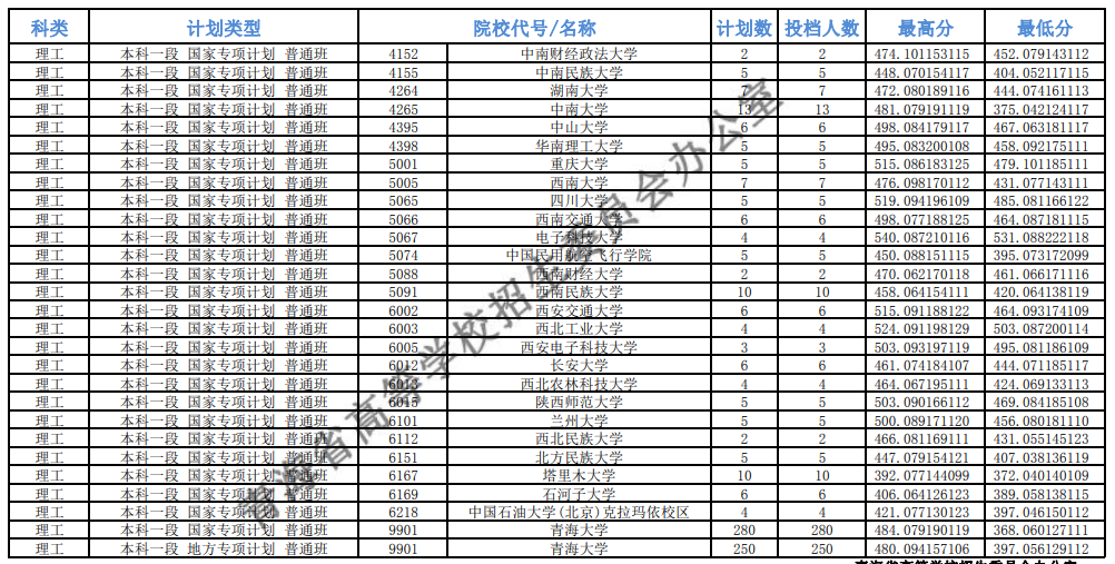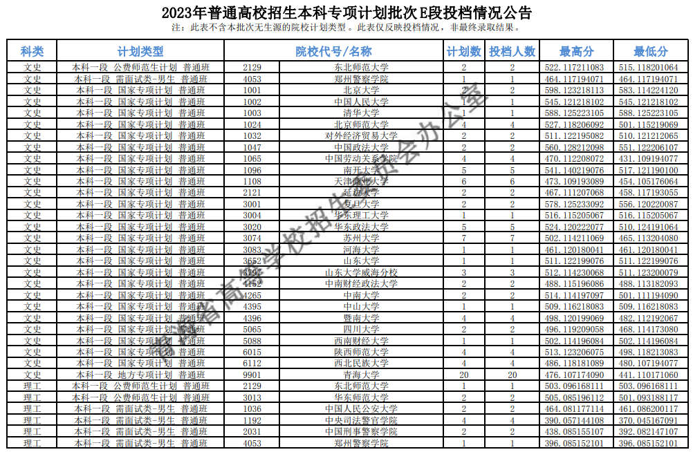 青海省2023年普通高校招生本科专项计划批次E段投档情况公告