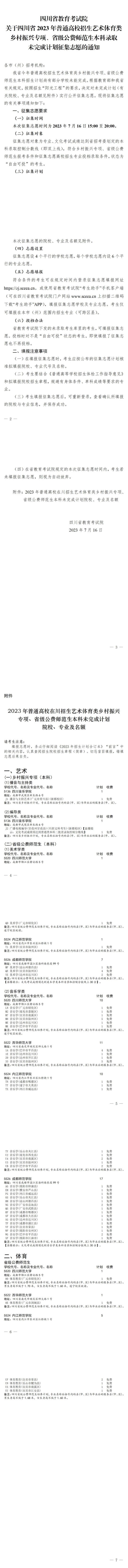 四川省2023年普通高校招生艺术体育类乡村振兴专项、省级公费师范生本科录取未完成计划征集志愿的通知