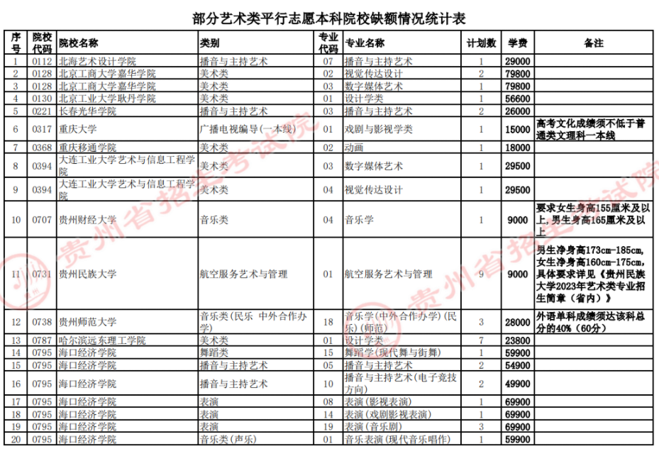 二、院校征集志愿计划数及专业见附表,考生填报时,请仔细查阅《贵州省2023年高考高校招生专业目录》和院校招生章程,了解院校招生专业的具体要求。