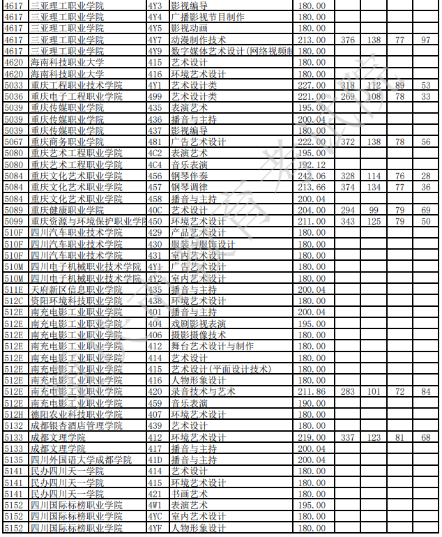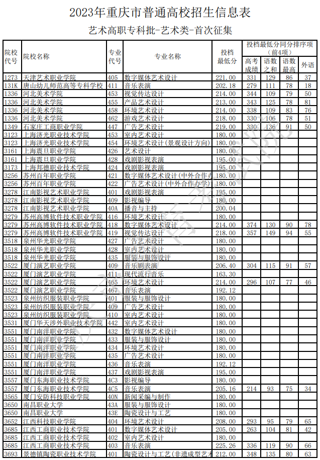 2023年重庆市普通高校招生信息表-艺术高职专科批-艺术类-首次征集 点击查看