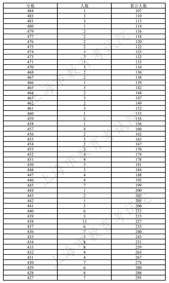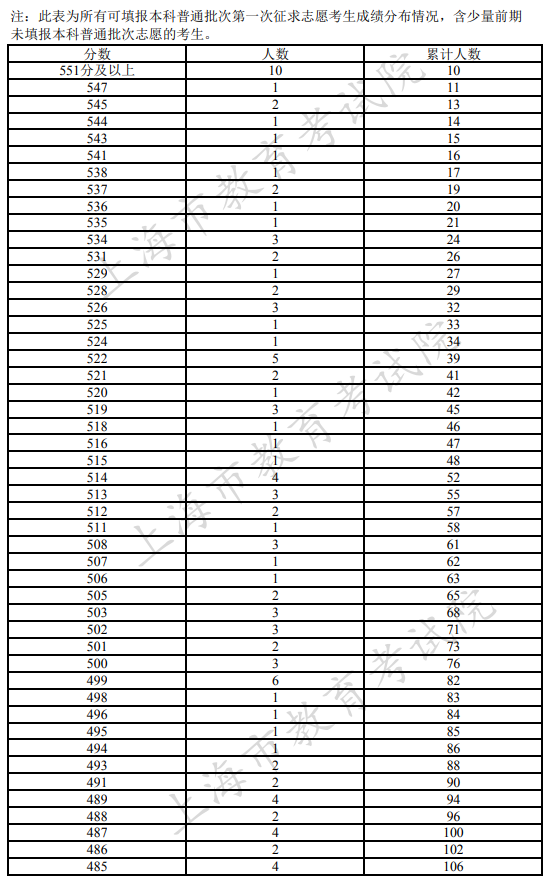上海2023年本科普通批次可填报第一次征求志愿考生成绩分布情况