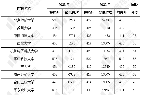 2. 2023年多所211及以上院校投档位次波动较大