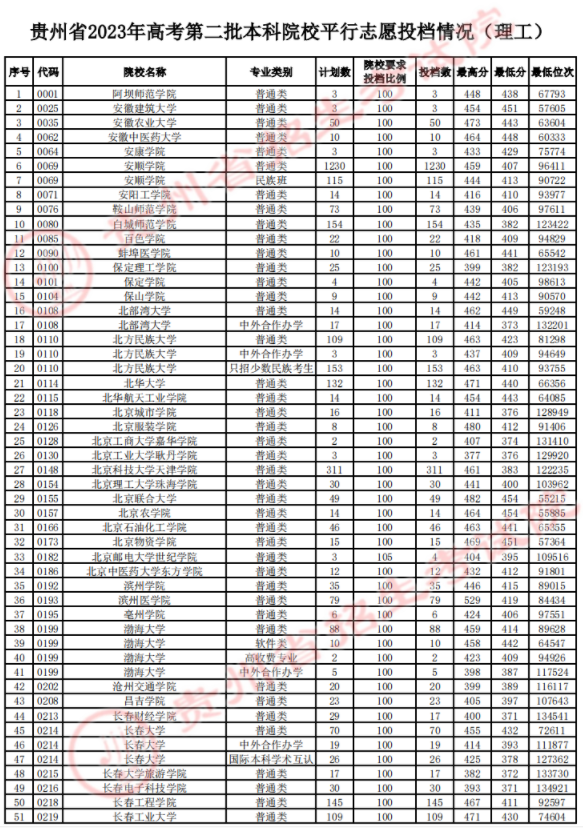 更多详情:贵州省2023年高考第二批本科院校平行志愿投档情况