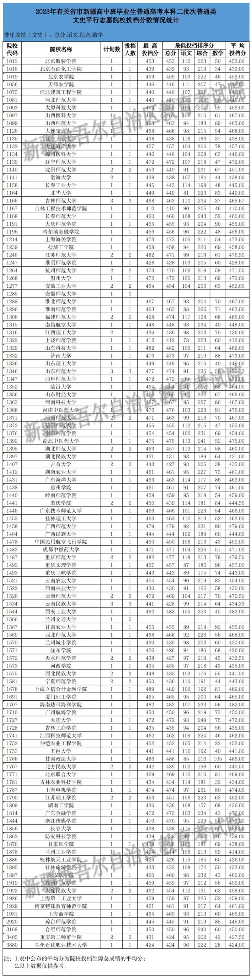 按照录取工作安排,自治区2023年普通高校招收有关省市新疆高中班毕业生本科二批次8月4日正式投档,录取现场工作组根据投档原则进行了投档,并通知相关院校及时接档、阅档,要求其按照录取原则及招生章程进行录取。目前,各录取环节工作有序进行,现将各院校投档情况公布如下。