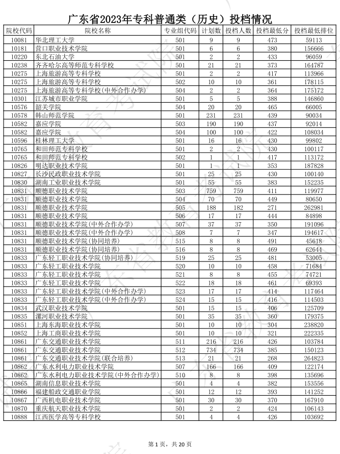 更多详情:广东省2023年普通高考专科批次普通类投档情况 点击下载