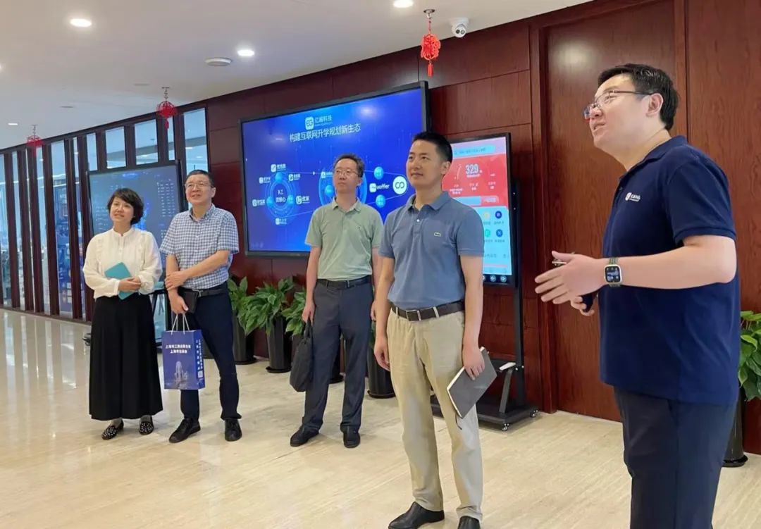 为了积极引导民营企业参与精准扶贫工作,助力宝山区赴乡村爱心助学扶贫项目,2023年8月4日宝山区工商业联合会潘振飞书记、吴军副主席、范娟红副主席、龚浩部长一行莅临亿阁科技走访调研。