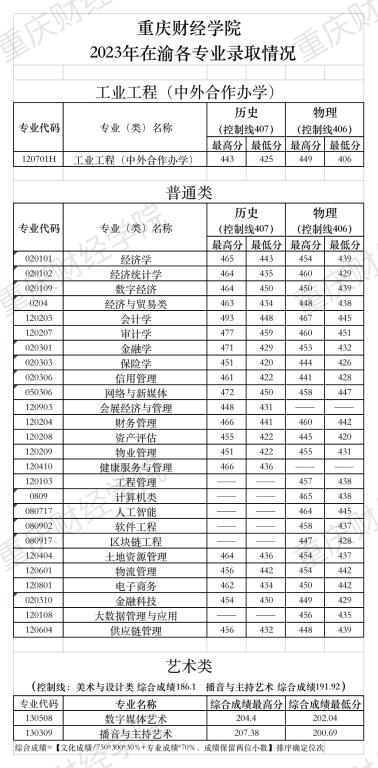 2023年在重庆录取工作已全部结束,现将各专业录取分数公布如下: