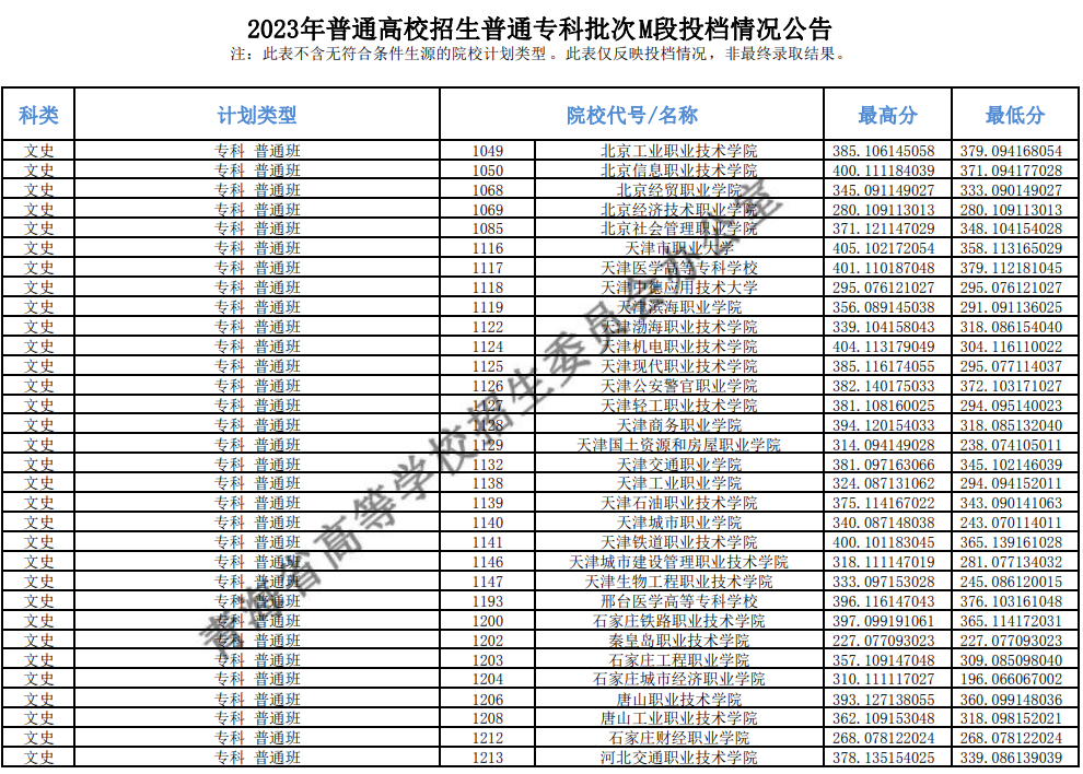 青海:2023年普通高校招生普通专科批次M段投档情况公告点击查看