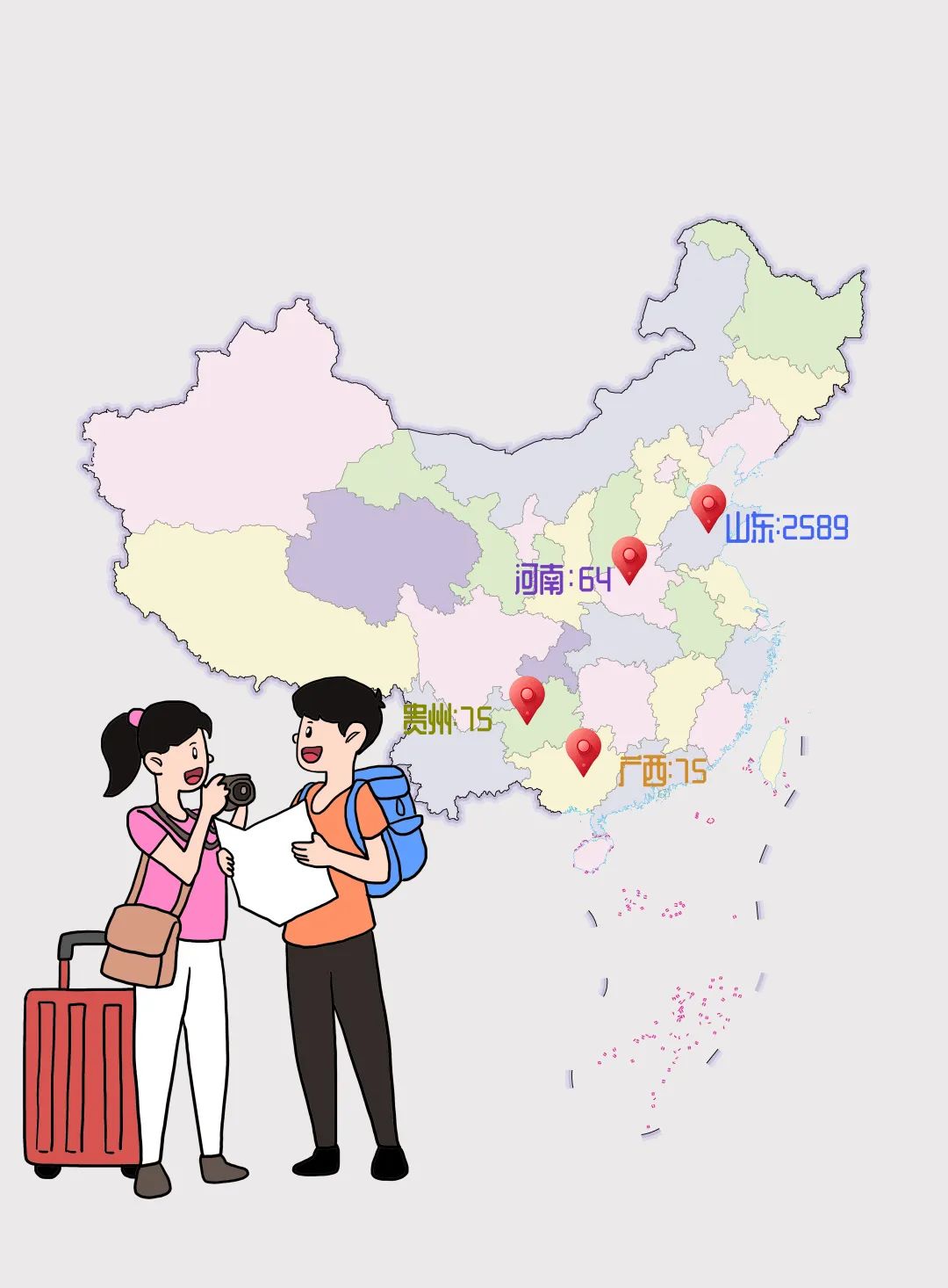2023级萌新们来自全国31个省市区,向潍医输送了最多新鲜血液的是山东省,共计2589人,占比高达76.7%。其中,寿光市荣获区县人数TOP1,昌乐县和诸城市紧随其后。贵州省和广西壮族自治区人数略次于山东省。家离潍医最远的同学来自西藏自治区日喀则市定日县,4134公里,只是地理上的距离,而我们早已约定今天的相遇。