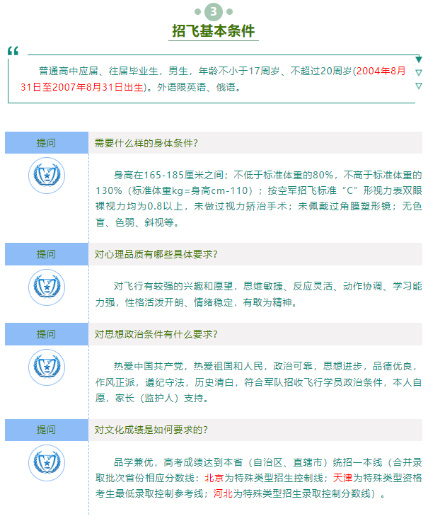 空军招收飞行学员政策规定,由空军招飞局负责解释。未尽事宜,请来电来函,或登录空军招飞网查询。
