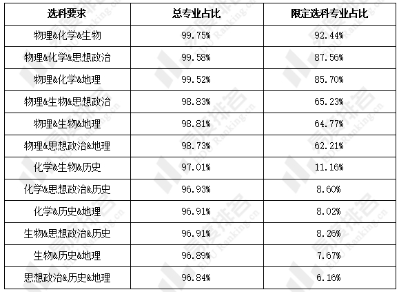 注:因宁夏为“3+1+2”模式,因此以上仅含包含物理或历史的选科组,不含“物理+历史”的选科组。