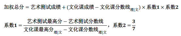 文化课成绩达到分数线,且艺术专业测试成绩达90分(含)以上的考生,按加权总分由高到低排序,分艺术项目进行认定。