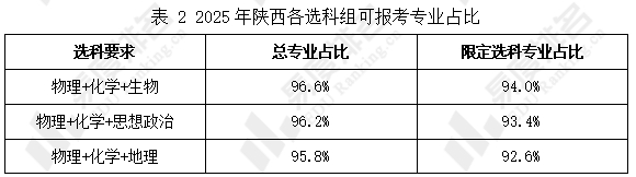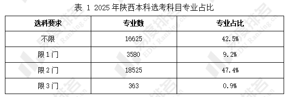 1. 2025年陕西不限科目和限2门科目专业共占近90%